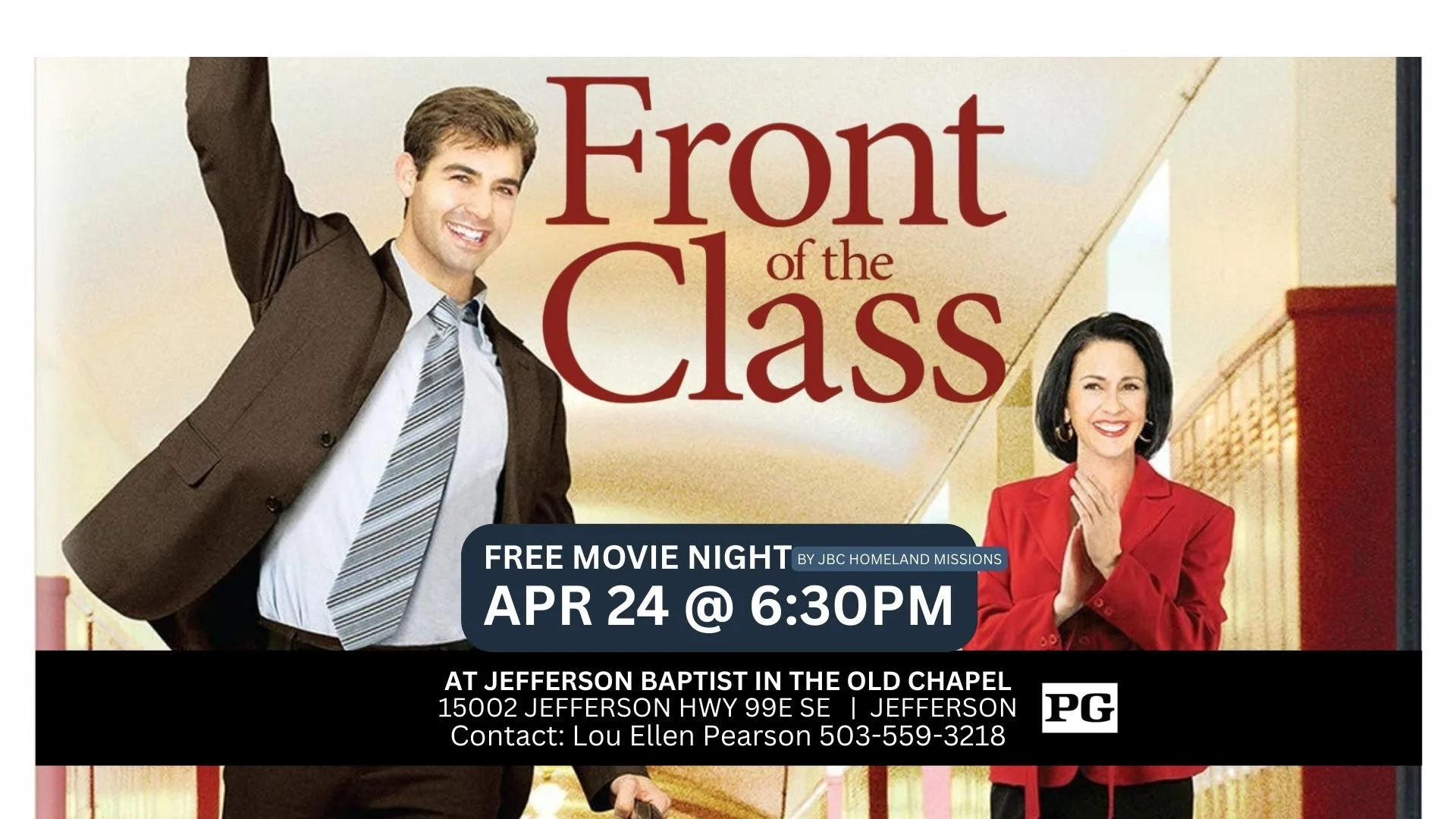 Next movie night: Apr 24, 6:30pm in the Old Chapel, showing “Front of the Class”, rated PG