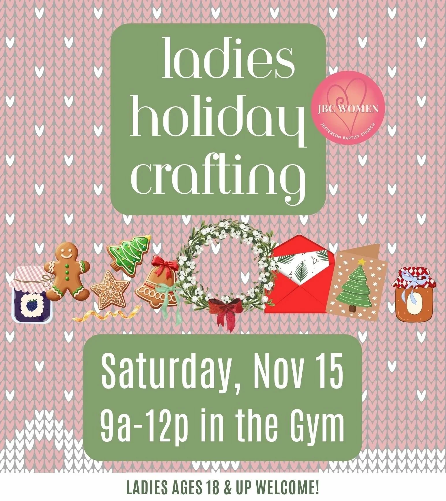 Nov 15 – 9am-12pm in the Gym; Open to all ladies age 18 & up. Suggested $5 donation per person.