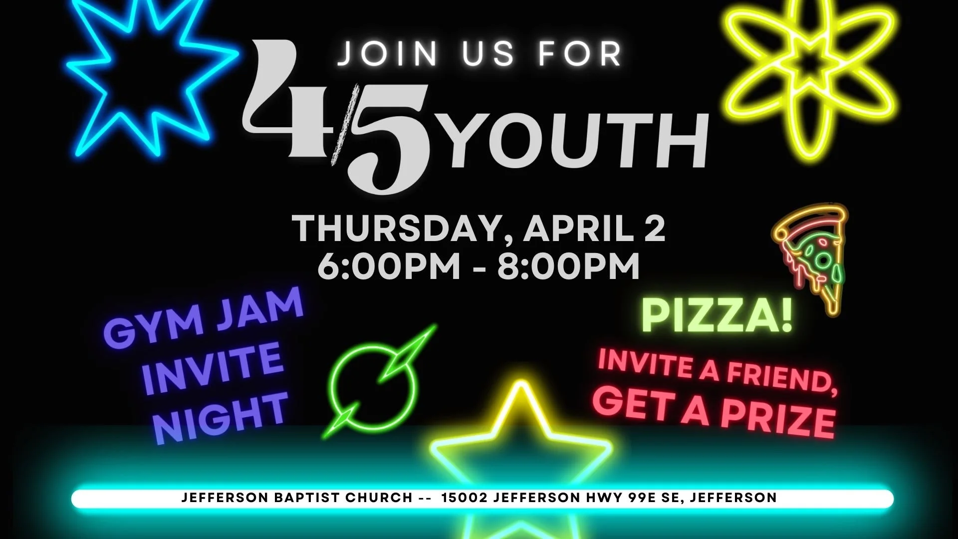 6pm-8pm at Jefferson Baptist Church in the Youth Center